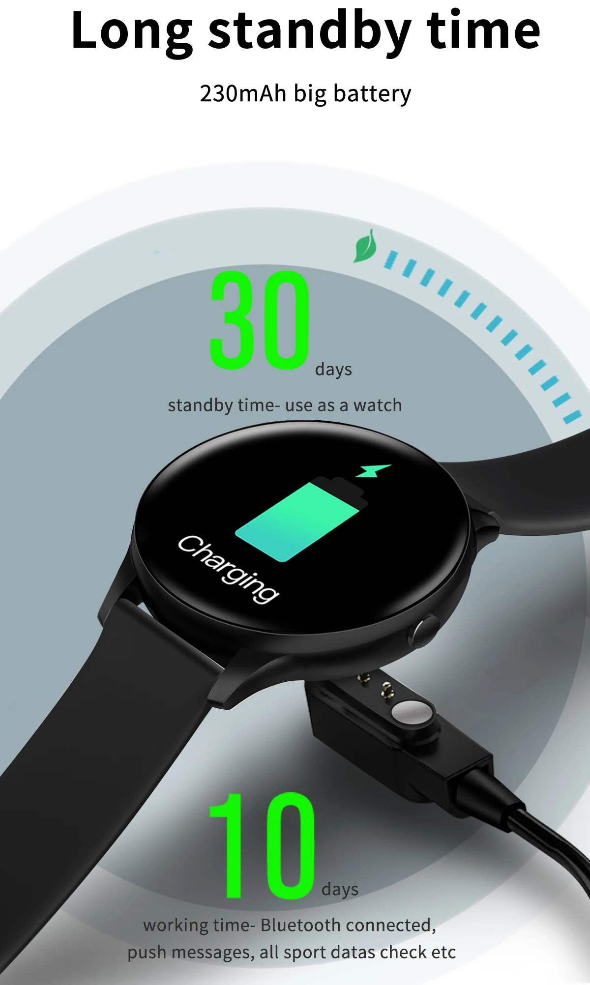 Το Kospet K21 smartwatch έρχεται με στρογγυλή οθόνη 1.3″ και ανάλυση 240 x 240. Συνδέεται με το κινητό σας μέσω BT V5.0 και είναι συμβατό με συσκευές με Android 4.4 και άνω ή iOS 8.2 και άνω. Φέρει επαναφορτιζόμενη μπαταρία λιθίου χωρητικότητας 230mAh, που όταν φορτιστεί πλήρως δίνει χρόνο αναμονής στις 30 ημέρες στο ρολόι ή χρόνο χρήσης στις 10 περίπου. Ενσωματώνει μνήμη 521KB και Flash 64MB. Για να συνδεθεί με το κινητό σας θα πρέπει να έχετε εγκαταστήσει πρώτα την εφαρμογή F Fit, από το Google Playstore ή το Apple Store.
