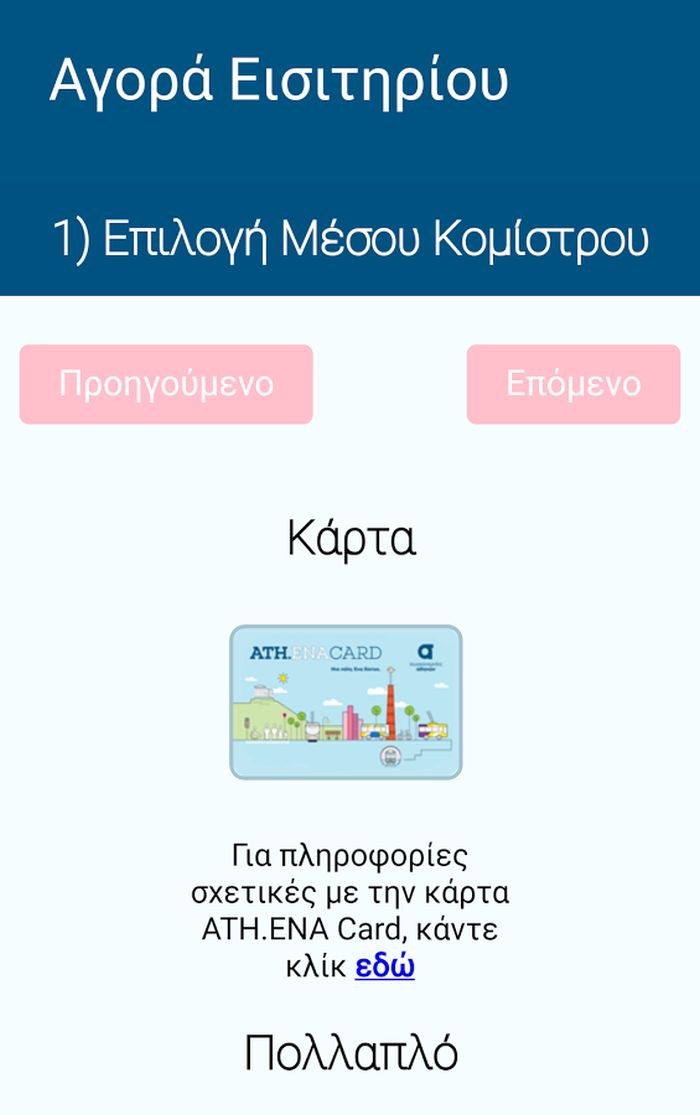 • Να φορτίσετε την προσωποποιημένη ATH.ENA Card σας με το αγορασμένο προϊόν, απ’ ευθείας απο το κινητό σας, χωρίς να χρειάζεται μετάβαση σε κάποιο εκδοτήριο ή μηχάνημα αυτόματης έκδοσης.”