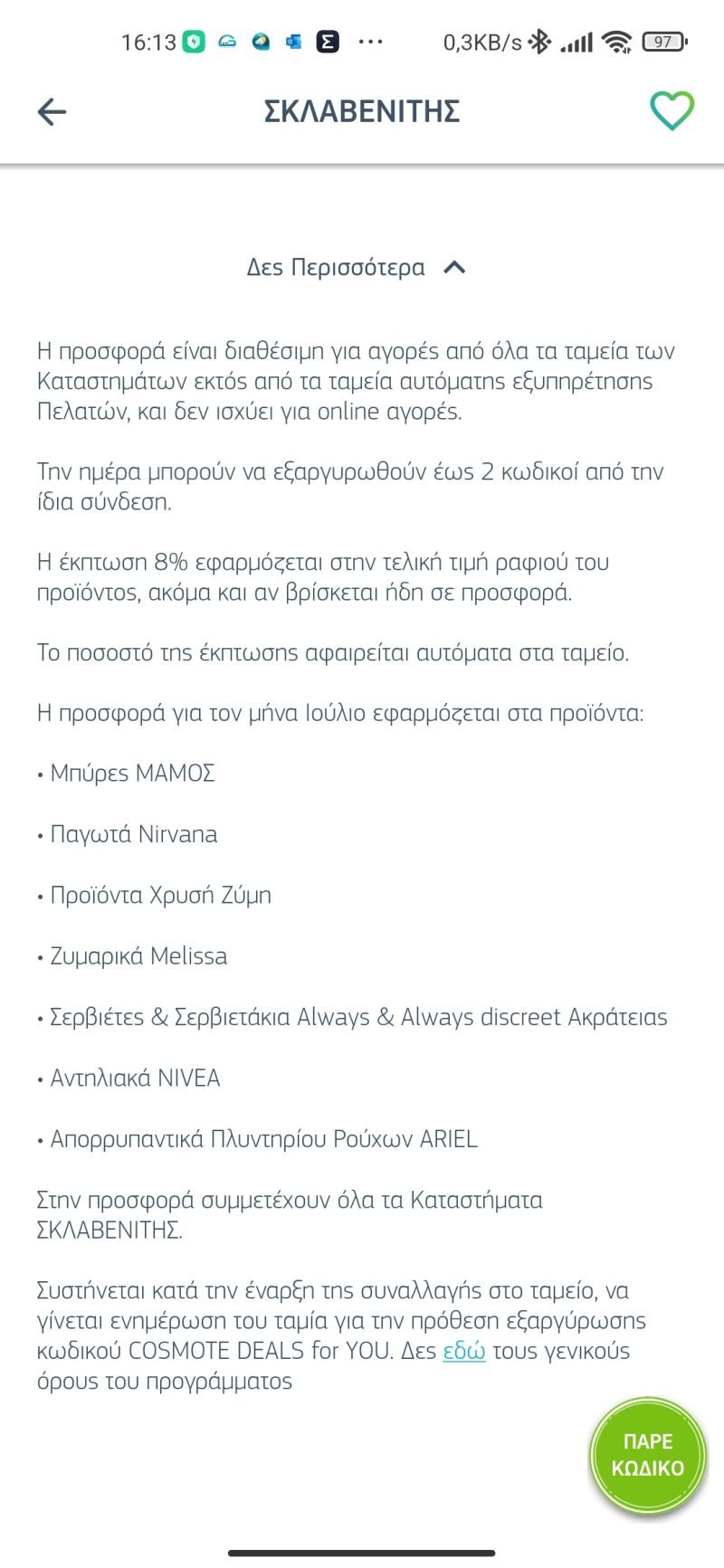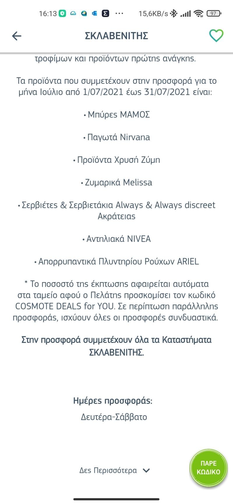 Έφτασε η ώρα για τα ψώνια της εβδομάδας & οι μοναδικές προσφορές στα Καταστήματα ΣΚΛΑΒΕΝΙΤΗΣ γίνονται ακόμα καλύτερες με το COSMOTE DEALS for YOU!