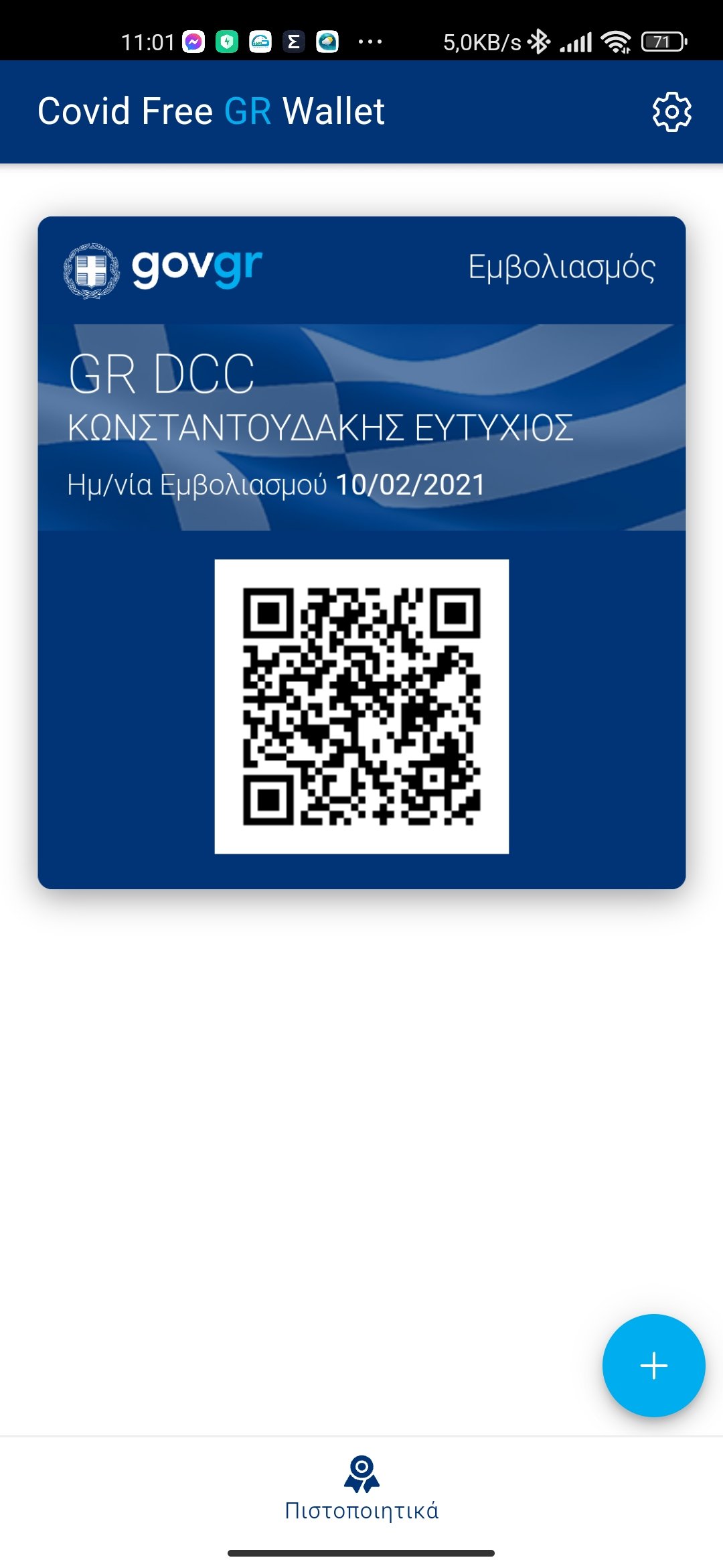 Με το Covid Free Gr Wallet απλοποιούμε την αποθήκευση των ψηφιακών πιστοποιητικών COVID στα κινητά τηλέφωνα και διευκολύνουμε τους πολίτες στην καθημερινότητά τους.