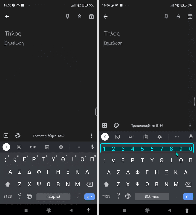Ενεργοποίηση σειράς αριθμών στο Gboard