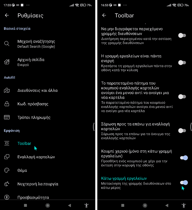 Ενεργοποίηση γραμμής διευθύνσεων του browser στο κάτω μέρος