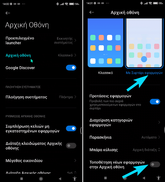 Ανάλογα την έκδοση Android και τη συσκευή ενδέχεται να δούμε τη σχετική ένδειξη με διαφορετική ονομασία. Στα περισσότερα κινητά της Xiaomi την απενεργοποιούμε από την Αρχική οθόνη, αφού πρώτα επιλέξουμε το συρτάρι εφαρμογών.