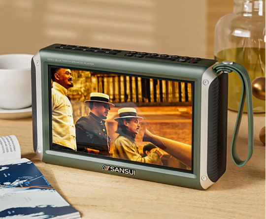 SANSUI F55 Wireless bluetooth Speaker 7-inch LED Display Radio Dual Internal Magnetic Horn Deep Bass Portable FM Radio Dual TF Card Slot/USB Drive/AUX MP4 Music Player Video Speaker with Stand and Lanyard σε τιμή;;; 46,74€ κομπλέ με τα μεταφορικά από το Banggood χρησιμοποιώντας εκπτωτικό κωδικό BGf2b726 και με ασφαλή χωρίς κανένα τελωνείο μέθοδο αποστολής Banggod Priority Shipping