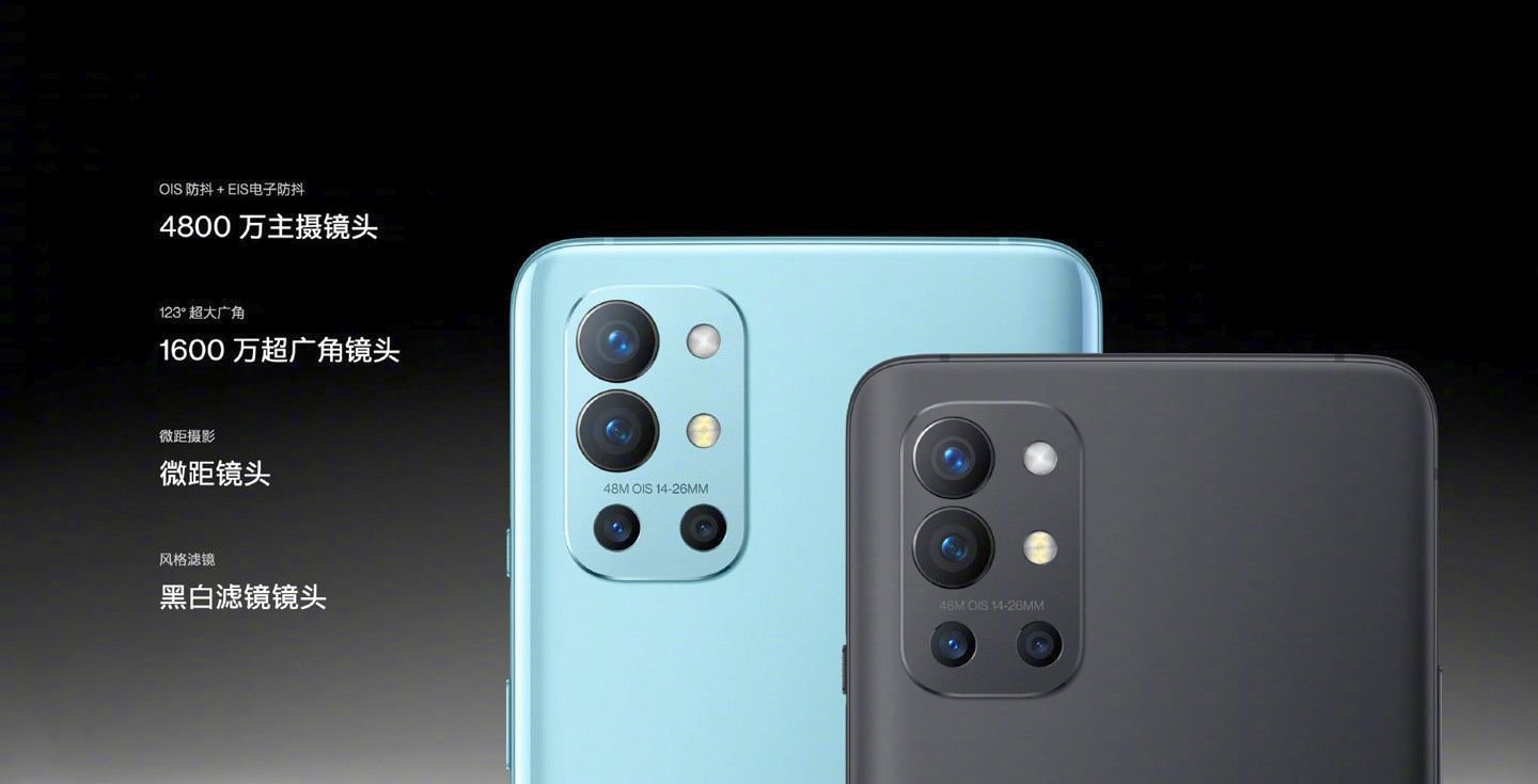 Όσον αφορά τις κάμερες, το OnePlus 9R διαθέτει μπροστινή 16MP (IMX471), πίσω κάμερα 48MP (IMX586, OIS) + 16MP 123 ° εξαιρετικά ευρεία γωνία + 5MP μακροεντολή + 2MP ασπρόμαυρο φακό, παρέχοντας φίλτρα cyberpunk.