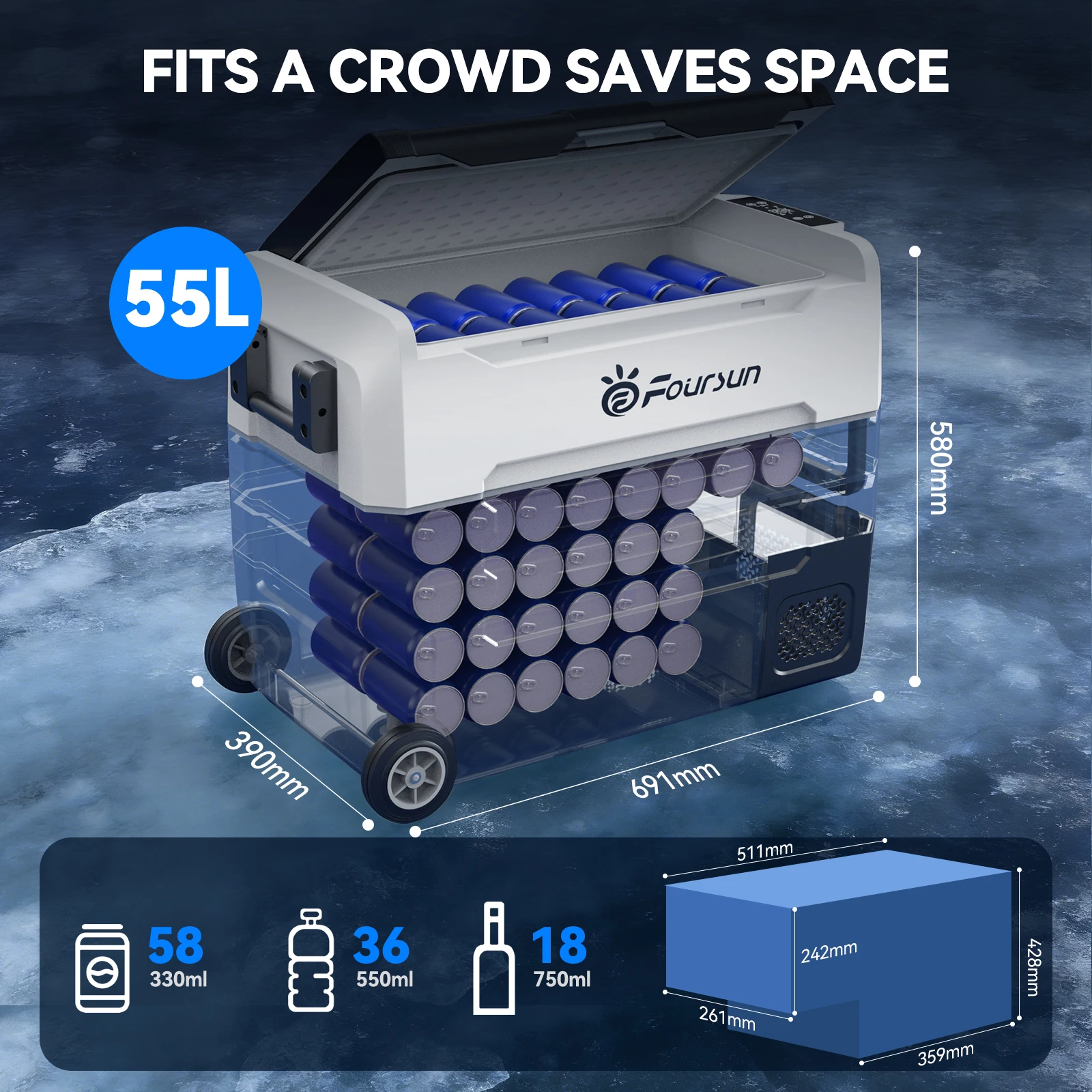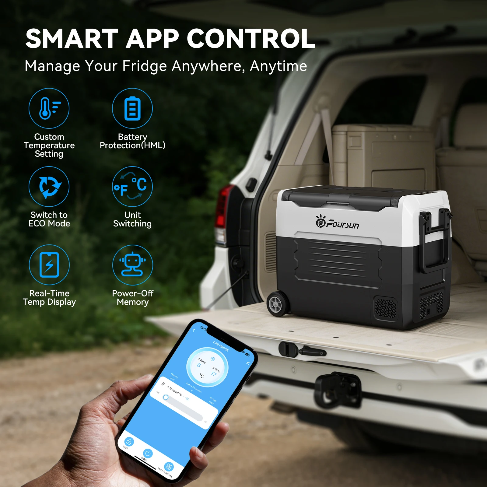 Foursun 55L Car Fridge Freezer with Bluetooth App Control Portable Compressor Cooler for Camping, Travel, Home σε τιμή 178,66€ κομπλέ με τα μεταφορικά από Πολωνία και τον επίσημο μεταπωλητή της Foursan στο Aliexpress, χρησιμοποιώντας εκπτωτικό κωδικό CDOF05 και χωρίς κανένα τελωνείο σε λίγες ημέρες στο σπίτι σας.