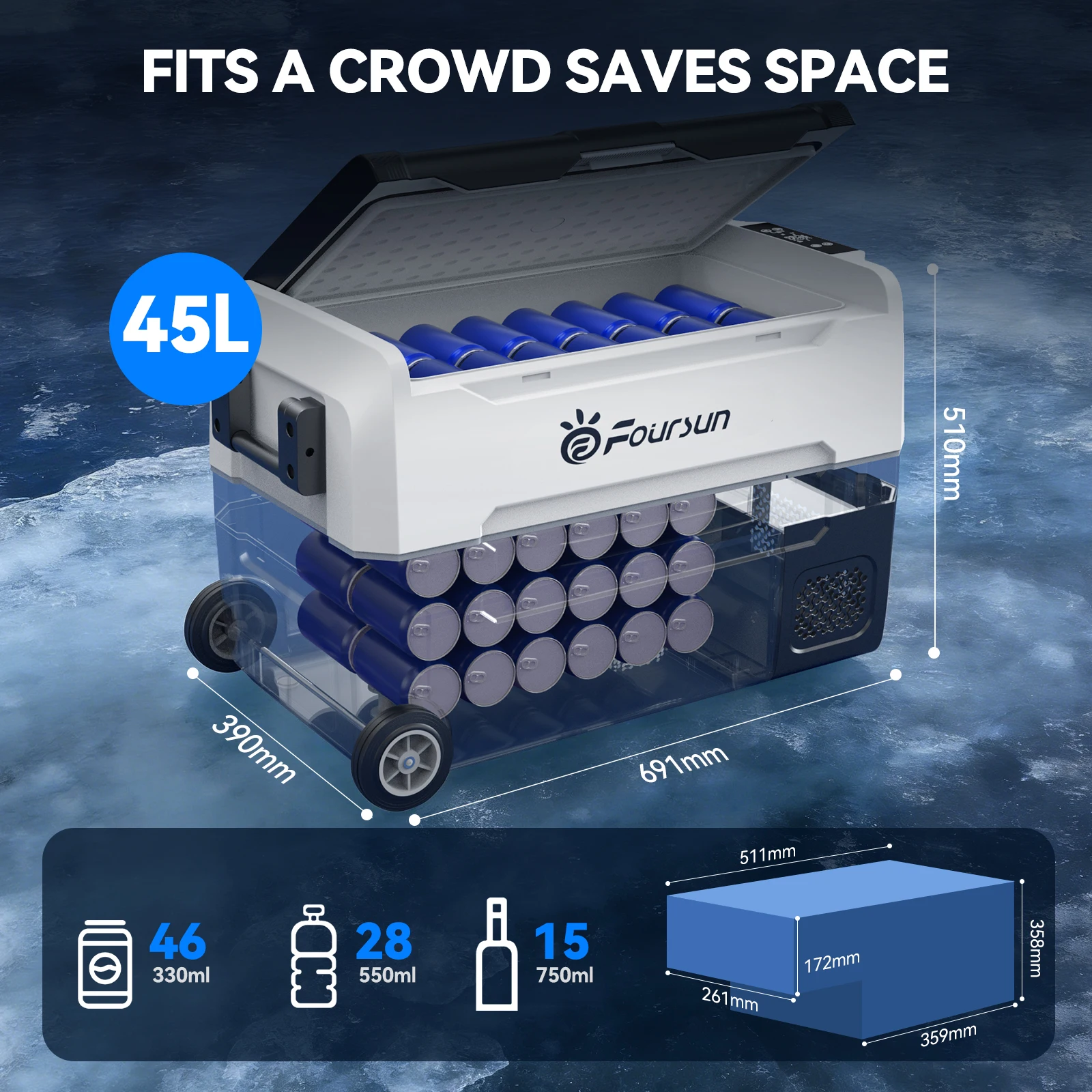 Foursun 45L Car Fridge Freezer with Bluetooth App Control Portable Compressor Cooler for Camping, Travel, Home σε τιμή 166,80€ κομπλέ με τα μεταφορικά από Πολωνία και τον επίσημο μεταπωλητή της Foursan στο Aliexpress, χρησιμοποιώντας εκπτωτικό κωδικό CDOF05 και χωρίς κανένα τελωνείο σε λίγες ημέρες στο σπίτι σας.