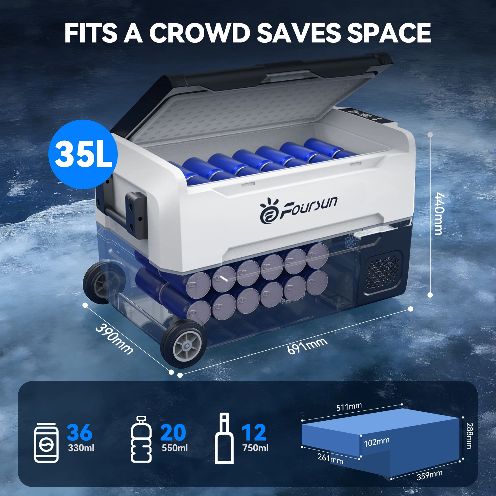 Foursun 35L Car Fridge Freezer with Bluetooth App Control Portable Compressor Cooler for Camping, Travel, Home σε τιμή 156,04€ κομπλέ με τα μεταφορικά από Πολωνία και τον επίσημο μεταπωλητή της Foursan στο Aliexpress, χρησιμοποιώντας εκπτωτικό κωδικό CDOF05 και χωρίς κανένα τελωνείο σε λίγες ημέρες στο σπίτι σας.