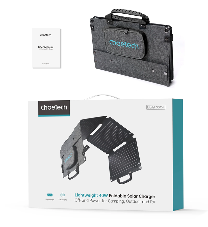 Choetech SC006 foldable solar charger 40W 1xUSB QC, 1xUSB-C PD (gray) σε τιμή 63,92€ κομπλέ με τα μεταφορικά από το kimstore χρησιμοποιώντας τον εκπτωτικό κωδικό UNPACKMAN και από ΕΛΛΑΔΑ σε λίγες ημέρες στον χώρο σας.