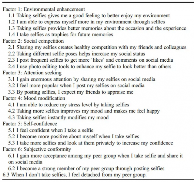 Η μελέτη καθιερώνει μια Selfitis Behavior Scale (SBS), η οποία τοποθετεί τους ανθρώπους που τραβούν εμμονικά selfies σε κατηγορίες, ανάλογα με τη “σοβαρότητα της κατάστασής τους”.