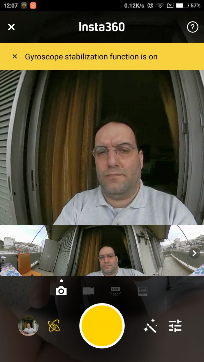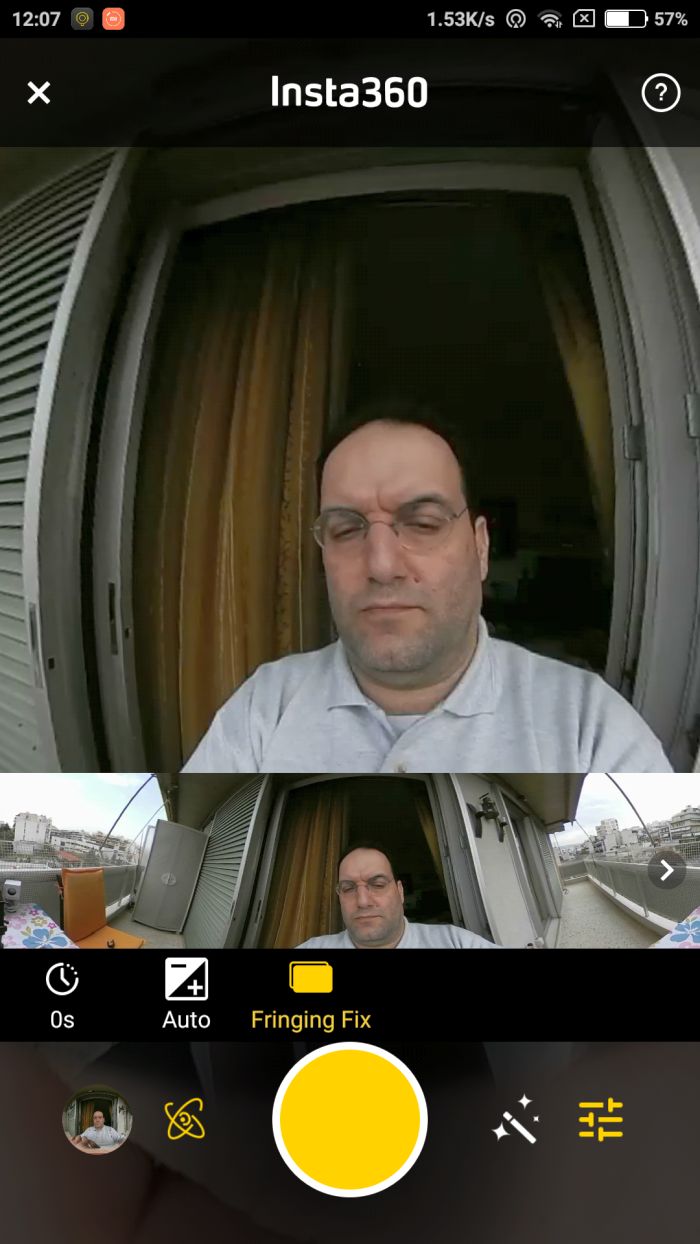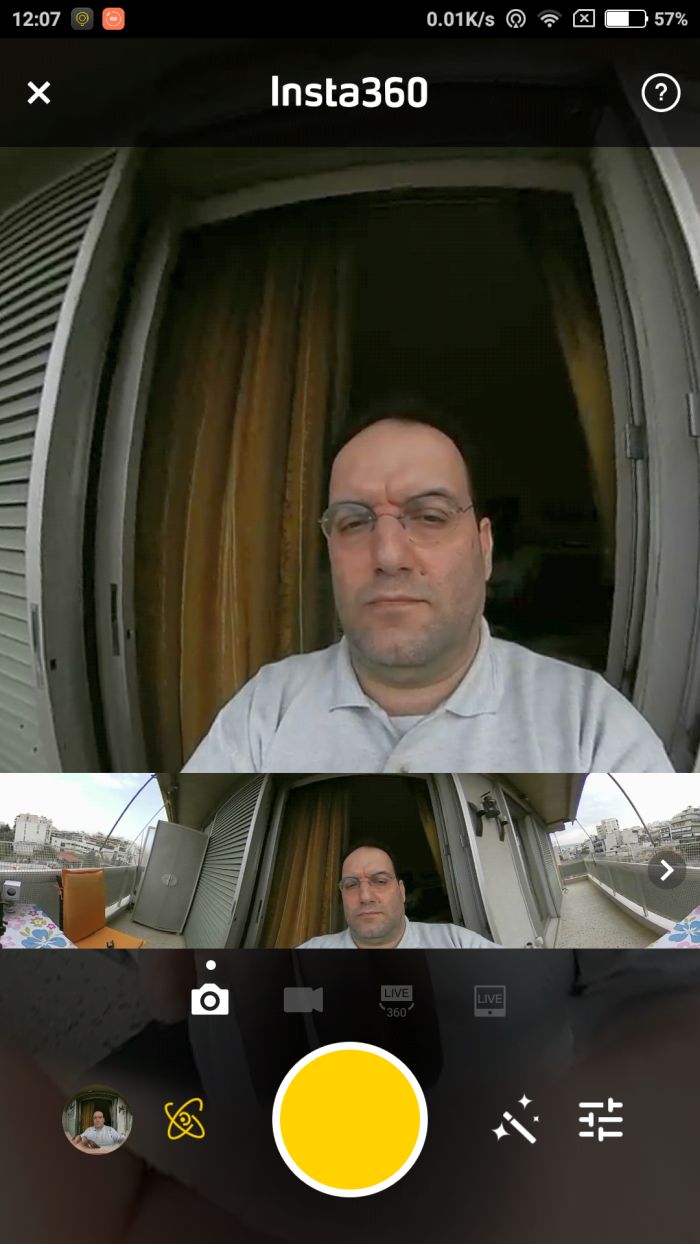 Όπως βλέπετε και στις φωτογραφίες μέσα από την εφαρμογή, η οθόνη χωρίζεται στα δύο. Η μία εικόνα είναι αυτό που φαίνεται από τον ένα φακό και δείχνει εμένα και αυτό που φαίνεται πίσω μου, ενώ βλέπουμε στο κάτω μέρος της οθόνης του κινητού, μία 360 μοίρες άποψη της περιοχής!