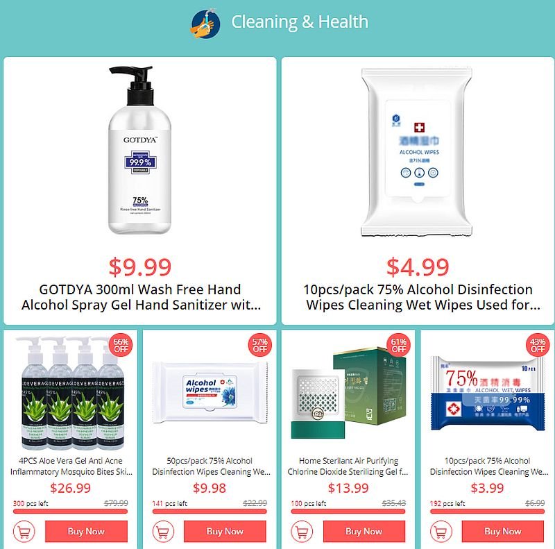 Στη συνέχεια θα βρείτε διάφορα αντισηπτικά…που τουλάχιστον εδώ δυστυχώς δεν υπάρχουν πουθενά και εάν βρείτε κανένα κάπου, δεν θέλετε να ξέρετε σε τι τιμή θα τα βρείτε. Τουλάχιστον εδώ οι τιμές είναι πιο φυσιολογικές…. Έτσι θα βρείτε μπουκάλι 300ml με αντισηπτικό με 75% αλκοόλη στα 9.2€ και αντισηπτικά μαντηλάκια 50 τεμαχίων με 75% αλκοόλη στα $ 9.98.