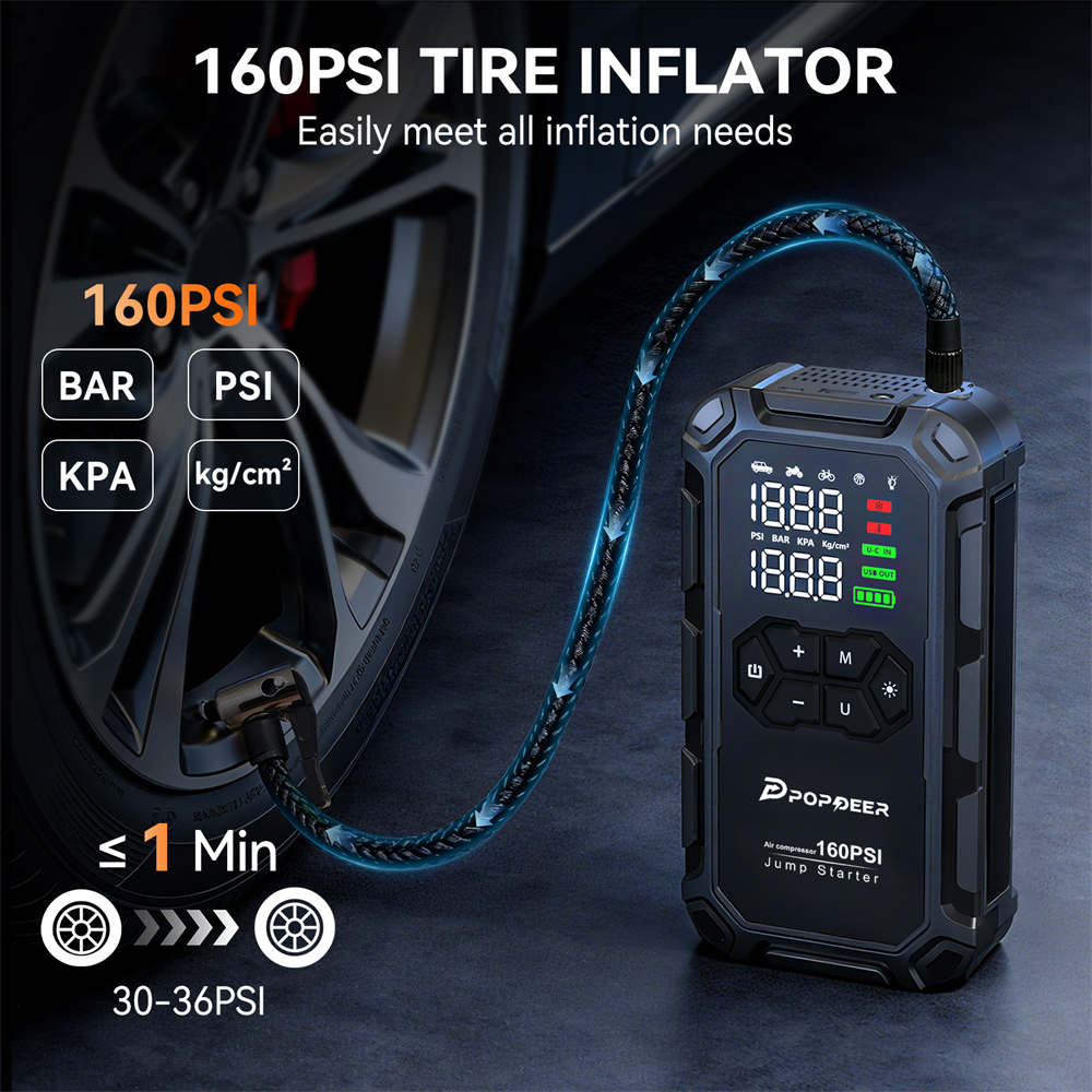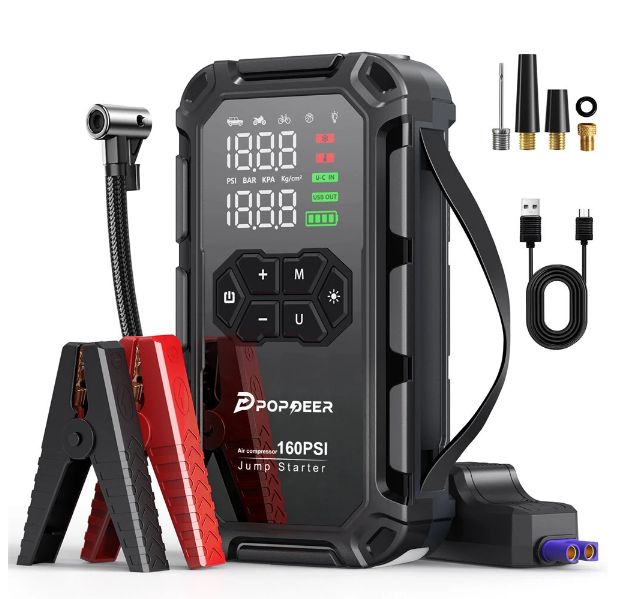 POPDEER PD-JA66 6000A Jump Starter with Air Compressor 160PSI, for All Gas & 8L Diesel Engines, LCD Display, USB Port, LED Light σε τιμή 44,59€ ΚΟΜΠΛΕ με τα μεταφορικά από το επίσημο κατάστημα της Popdeer στο Aliexpress, χρησιμοποιώντας εκπτωτικό κωδικό 07CD49