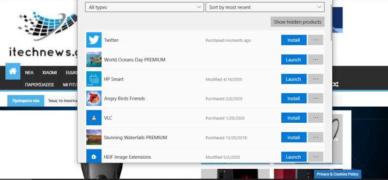 3. Αφού το κάνετε, πάτε στο Microsoft Store του υπολογιστή σας, διαλέξτε τις τρεις κουκίδες πάνω δεξιά και από την επιλογή Library. Βρείτε τα wallpaper, εγκαταστήστε τα και μετά τρέξτε τα!