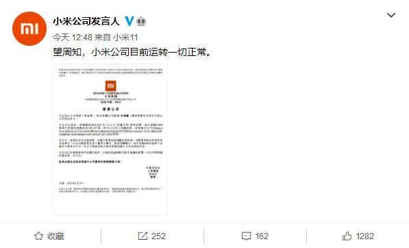Το μεσημέρι στις 15 Ιανουαρίου, ο επίσημος εκπρόσωπος της Xiaomi Weibo δημοσίευσε μια ανακοίνωση που αναφέρει ότι «οι τρέχουσες λειτουργίες της Xiaomi είναι φυσιολογικές. ”