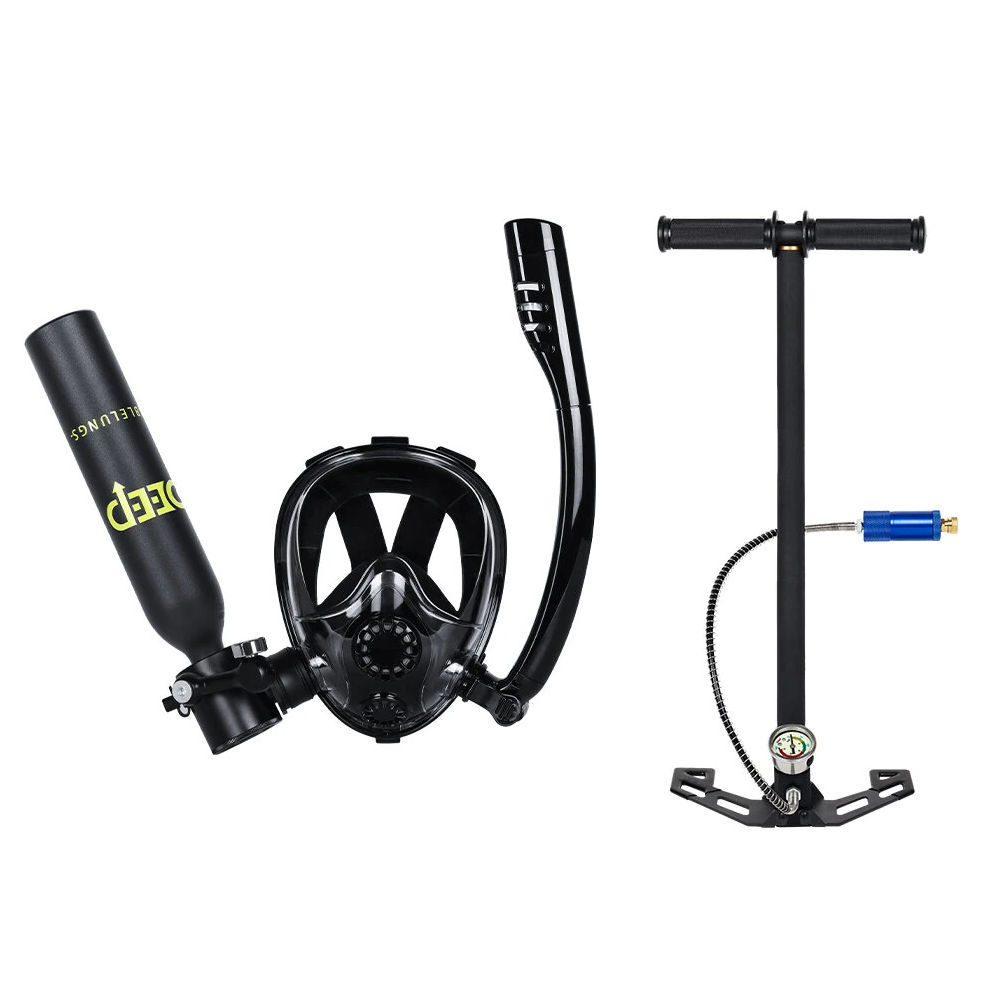 DIDEEP 0.5L All-in-One Full Face Snorkel Cover Mini Scuba Tank Kit Portable Oxygen Cylinder Breather with Air Pump Automatic Air Compressor Diving Cylinder Kit for Snorkeling Recreational Diving σε τιμή;;; 119,9€ κομπλέ με τα μεταφορικά από την Τσέχικη αποθήκη του Banggood χρησιμοποιώντας τον εκπτωτικό κωδικό BGCMP985 και χωρίς κανένα τελωνείο σε λίγες ημέρες στο σπίτι σας