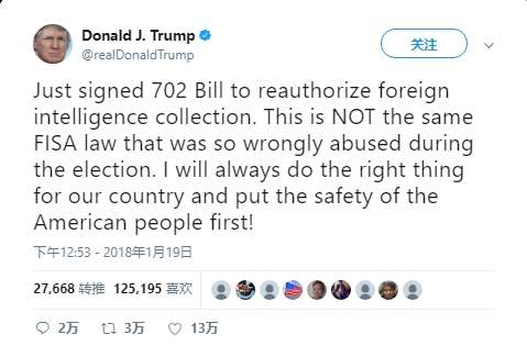 Το νομοσχέδιο αποστάλθηκε αργότερα στο γραφείο του προέδρου των Ηνωμένων Πολιτειών, Donald Trump. Τη δεύτερη ημέρα, ο Trump δημοσίευσε στο Twitter ότι είχε “υπογράψει τον νόμο 702 για να επιτρέψει πάλι τη συλλογή ξένων πληροφοριών”.