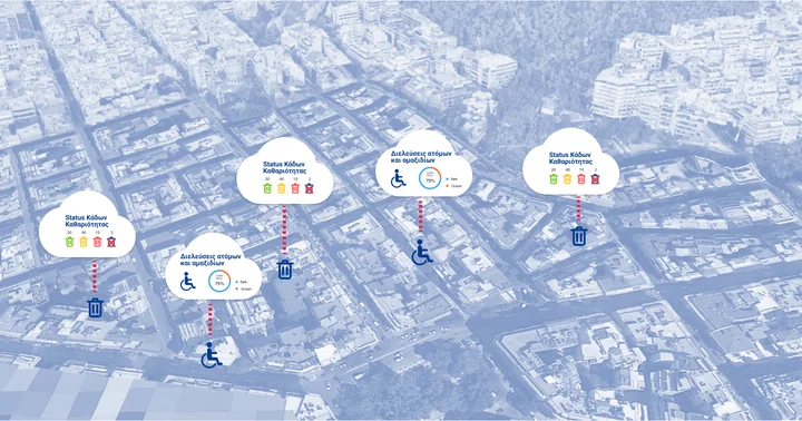 Με πρώτο στόχο την αποτελεσματική αντιμετώπιση δύο «καυτών» και χρόνιων προβλημάτων που αντιμετωπίζουν οι κάτοικοι αλλά και οι επισκέπτες της Αθήνας, της καθαριότητας και της προσβασιμότητας, το Project Αθηνά συνίσταται στη στρατηγική τοποθέτηση αισθητήρων στον αστικό ιστό, οι οποίοι συλλέγουν δεδομένα σχετικά με την καθαριότητα στους δρόμους και στην ατμόσφαιρα, την προσβασιμότητα σε διαβάσεις πεζών και ατόμων με αναπηρία, την ηχορύπανση, τη θερμοκρασία και την υγρασία του αέρα.