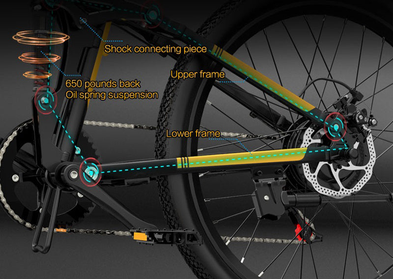 Διπλό αμορτισέρ ελατηρίου λαδιού, η άνετη πίσω ανάρτηση ελατηρίου λαδιού στο πίσω μέρος απορροφά τους κραδασμούς. Η διπλή ανάρτηση ελατηρίου λαδιού χρησιμοποιείται για να παρέχει στον αναβάτη μια εμπειρία άνεσης κατά τη διάρκεια μιας οδήγησης του.