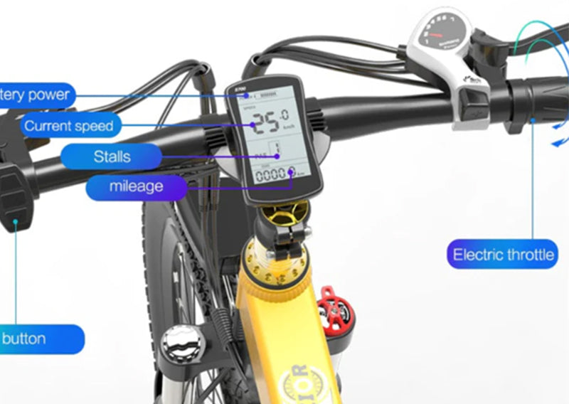 Η οθόνη LCD 5 ιντσών, του BEZIOR X500 Pro, είναι διαδραστική. Ο ενσωματωμένος διακόπτης ταχυτήτων, με προβολή δεδομένων ποδηλάτου, η ρύθμιση ισχύος εξόδου. Είναι αδιάβροχη με πιστοποίηση IP54.