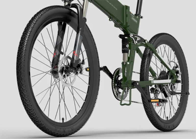 Το BEZIOR X500 Pro έχει ένα πολύ ισχυρό πλαίσιο από κράμα αλουμινίου, με διπλή ανάρτηση ελατηρίου – λαδιού στο μπροστινό πιρούνι το οποίο μπορεί να κλειδώνει