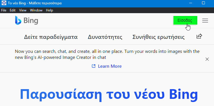 Από εδώ και μετά, μπορούμε να προσθέσουμε άμεσα και τα υπόλοιπα στυλ συνομιλίας του Bing.