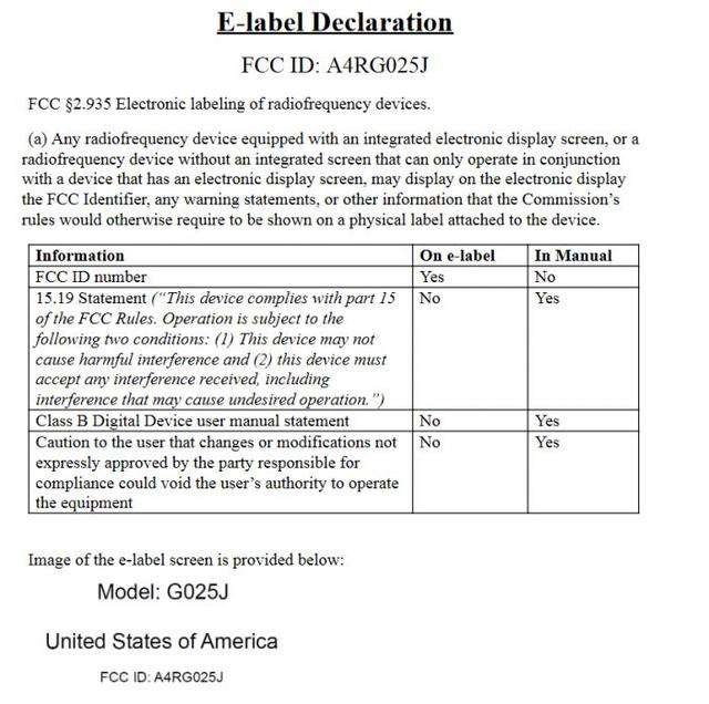 Το έγγραφο FCC απαριθμεί τρία μοντέλα, τα G025J, G025M και G025N. Το πρώτο λογικά πρέπει να είναι μοντέλο που θα κυκλοφορήσει στις ΗΠΑ και τα άλλα δύο μπορεί να είναι εκδόσεις για άλλες περιοχές.