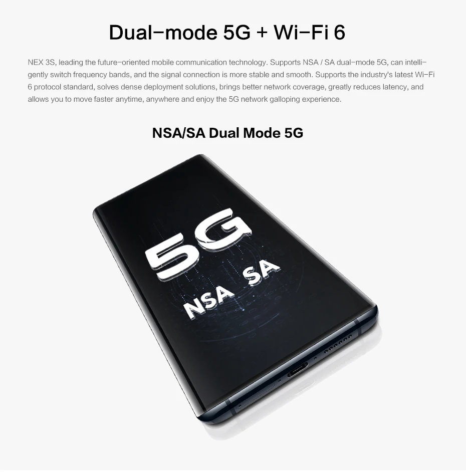 Σε σύγκριση με την προηγούμενη γενιά NEX 3 5G, το NEX 3S 5G έχει αναβαθμιστεί όσον αφορά το σχεδιασμό εμφάνισης, τη διαμόρφωση επιδόσεων και το δίκτυο.