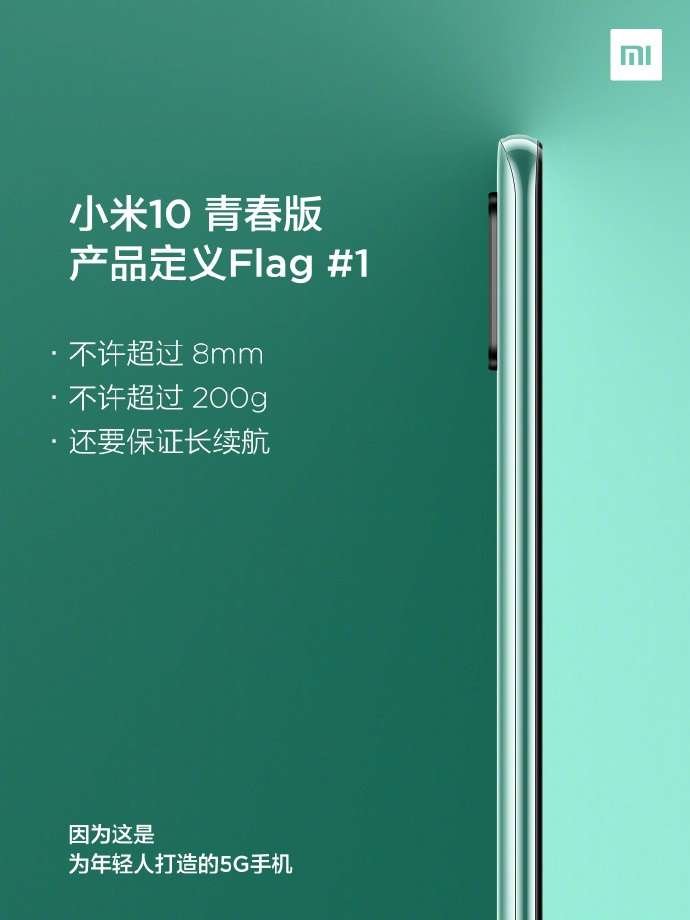 Η Xiaomi Mobile έδωσε επίσημα τη φωτογραφία προφίλ του νέου Xiaomi 10 Youth Edition σήμερα, ισχυριζόμενη ότι “δημιουργεί ένα πραγματικά λεπτό και ελαφρύ κινητό τηλέφωνο 5G για νέους”.