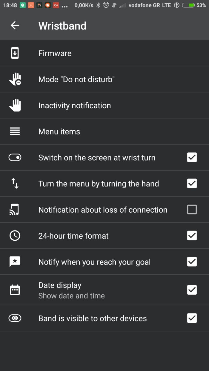 Ουσιαστικά όπως βλέπετε η πορεία είναι Settings -> Wristband -> Firmware.
