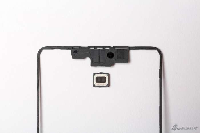Μητρική πλακέτα : Το λευκό τετράγωνο στην επάνω αριστερή γωνία της συσκευής είναι η ανίχνευση υπερήχων και αντιστοιχεί στο δεξιό ημικυκλικό τμήμα, που είναι ο δέκτης. Στη συνέχεια, χρησιμοποιείται μια σειρά αλγορίθμων για τον πλήρη προσδιορισμό της απόστασης μεταξύ του προσώπου και του ακουστικού.