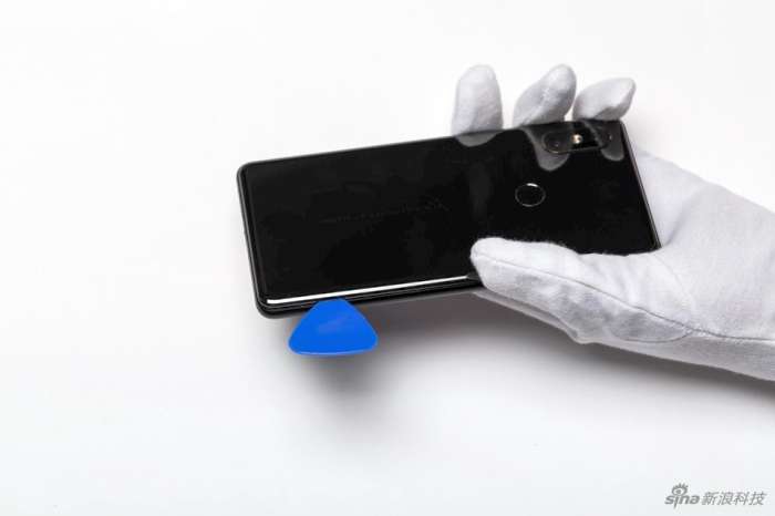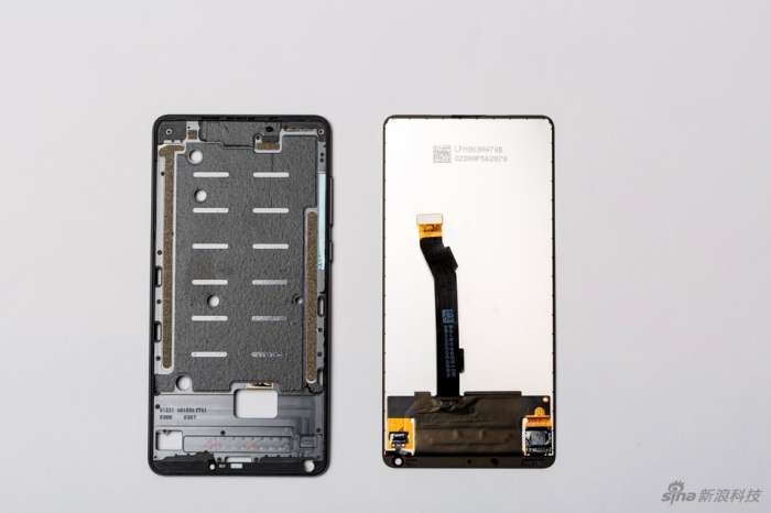 Αφαιρώντας την μητρική πλακέτα και την μπαταρία, μπορείτε να παρατηρήσετε ότι υπάρχει μία εγκοπή σχήματος U πάνω από τη μητρική πλακέτα και αυτό το μέρος αντιστοιχεί στο χώρο τοποθέτησης της κρυφής μονάδας του MIX 2S.