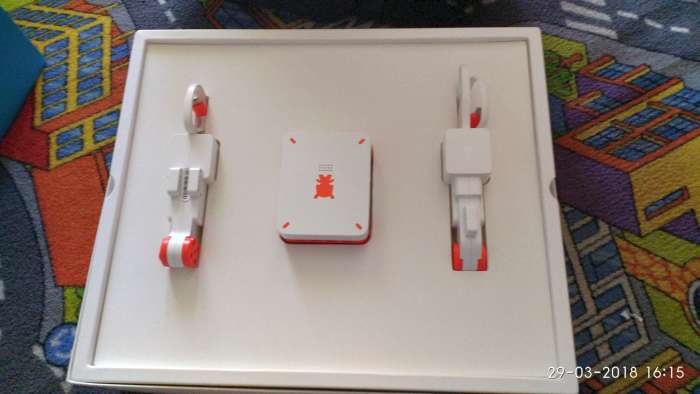 Ανοίγοντας το κουτί το πρώτο πράγμα που βλέπεις είναι την τεράστια επαναφορτιζόμενη μπαταρία που έχει και δύο εξαρτήματα που είναι τα χέρια του ρομπότ.