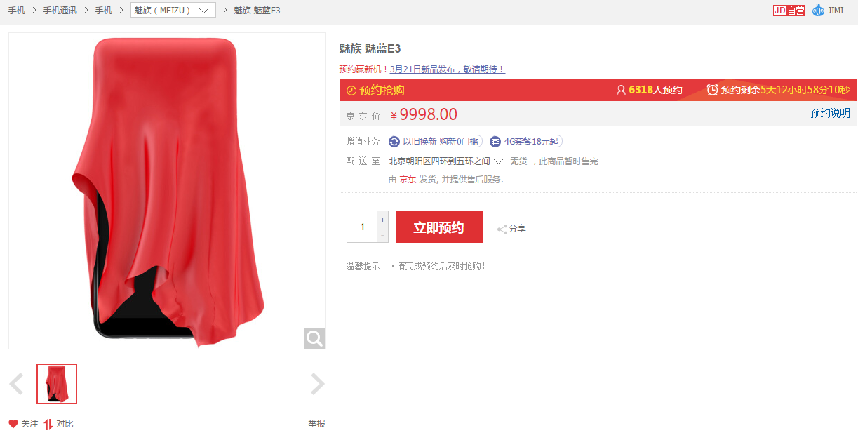 Στις 16 Μαρτίου, ανακοινώθηκε ότι το Charm Blue E3 θα εμφανιστεί στην επίσημη ιστοσελίδα του Meizu, Tmall, Jingdong και Suning Tesco. Εάν επισκεφτείτε την σελίδα, θα δείτε ότι υπάρχει κάτι σαν αντίστροφη μέτρηση, όπου το τέλος του ραντεβού με το Charm Blue E3 είναι στις 10:00 π.μ. στις 22 Μαρτίου. Είναι φανερό ότι το Charm Blue E3 θα ξεκινήσει να πωλείτε στις 22 Μαρτίου, μόλις δύο ημέρες αργότερα από το Redmi Note 5 που θα χτυπήσει την αγορά επίσημα στις 20 Μαρτίου.