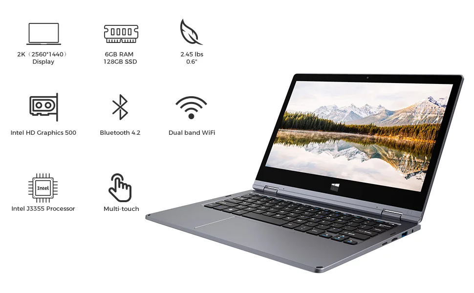 Το XIDU PhiBook Pro διαθέτει μία υψηλού επιπέδου WQHD Anti-Glare οθόνη. Έχει δυνατότητα περιστροφής για 360° για όποια δραστηριότητα θέλουμε, ενώ είναι φορητό και με πολύ κομψό σχεδιασμό. Η οθόνη του είναι 11.6″ και με ανάλυση 2560 x 1440. Για επεξεργαστή διαθέτει τον τετραπύρηνο Intel J3355 χρονισμένο στα 2.0GHz. Για κάρτα γραφικών έχει την Intel HD Graphics 500. Για μνήμη διαθέτει 6 GB LPDDR3 RAM και 128 GB SSD σκληρό δίσκο. Για λειτουργικό σύστημα έχει εγκαταστημένα τα Windows 10. Υποστηρίζει ασύρματη σύνδεση 802.11a/b/g/n/ac, 802.11ac, ενώ η μπαταρία του αντέχει στις 6 ώρες περίπου.