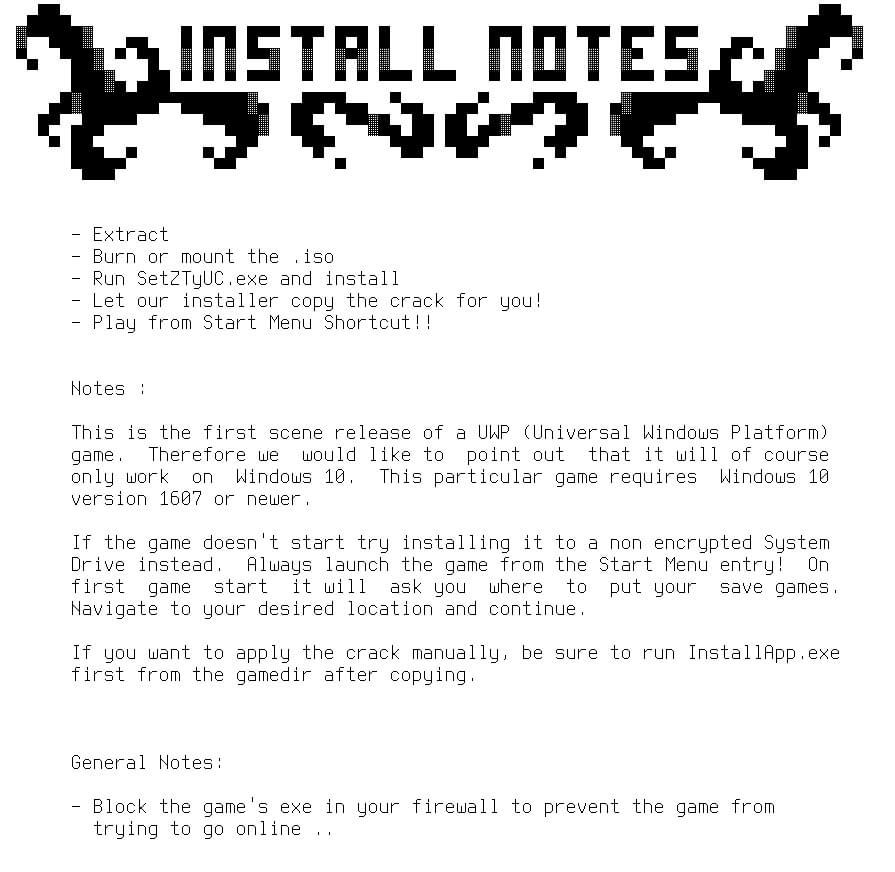 Βέβαια το συγκεκριμένο παιχνίδι μπορεί να μην είναι από τα πιο διαδεδομένα παιχνίδια του Microsoft Store, είναι όμως το πρώτο παιχνίδι που το έσπασαν! Βέβαια, όπως είναι αναμενόμενο, η ομάδα CODEX αναφέρει ρητώς ότι δεν πρέπει να συνδεθεί το παιχνίδι με το διαδίκτυο, γιατί θα σας πάρουν αμέσως χαμπάρι και καλό είναι να του μπλοκάρετε την πρόσβαση.